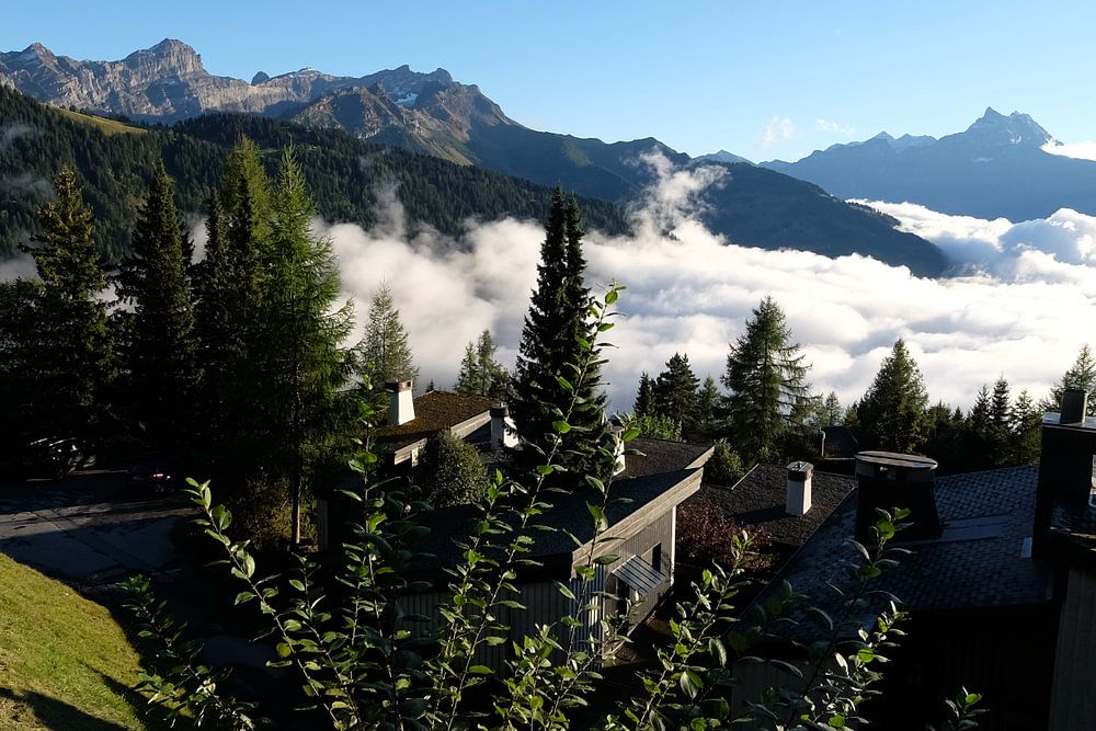 Zwitserland, uitzicht 's avonds op de Dents du Midi, boven de bewolking