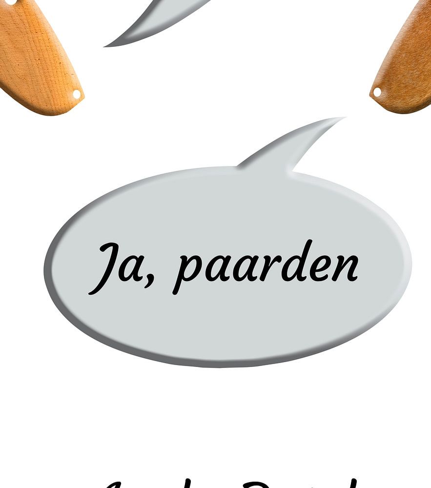 Cartoon Zwei Pferde unterhalten sich, ein Engländer sagt Pardon? Der andere, Niederländisch, antwortet, ja, Pferde. "Lost in Translation"