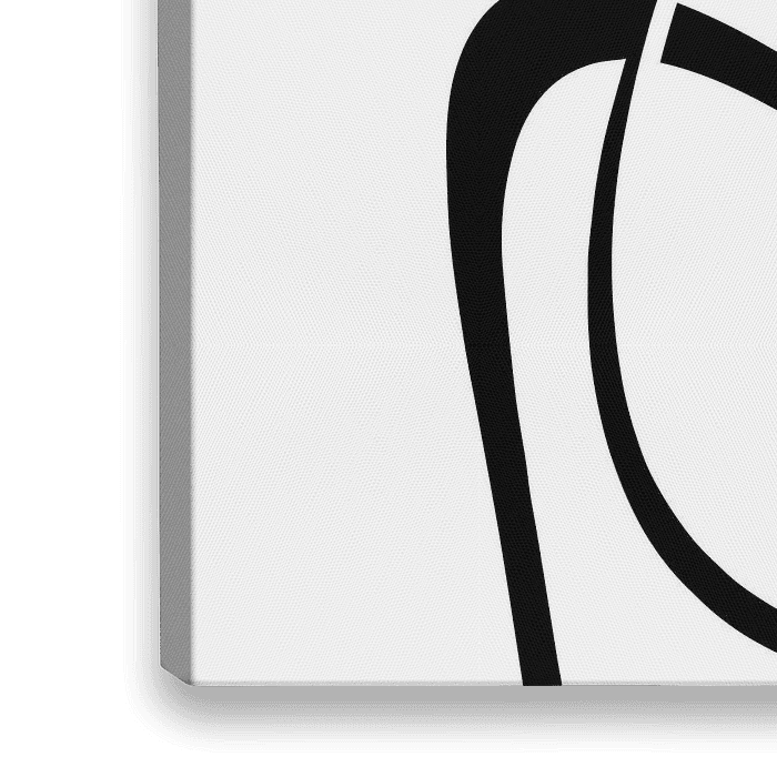 Minimale Linie und Form abstrakt in schwarz auf weiß. Zwei sich kreuzende Linien, eine dünnere und eine dickere, und eine schwarze organische ovale Form.
