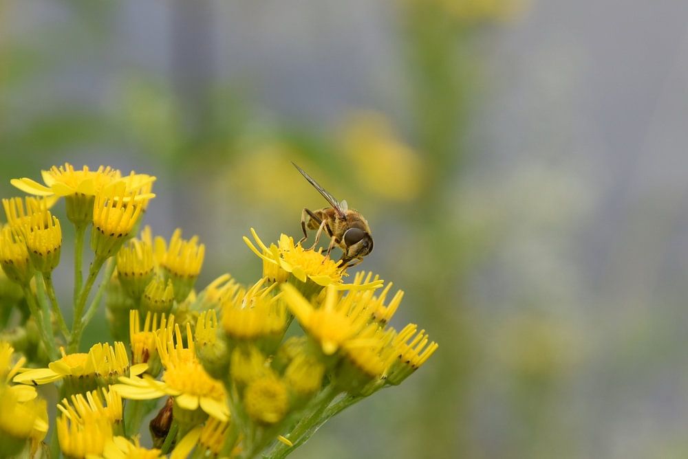 Insekt auf gelber Blüte, auf der Suche nach Nahrung.