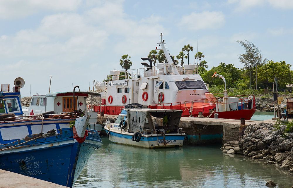 Dies ist der Hafen der Insel Delft in Sri Lanka. Hier kommt man mit dem Boot an, um die Insel zu besuchen. Ich persönlich mag die Kombination aus Land, Wasser und Booten.