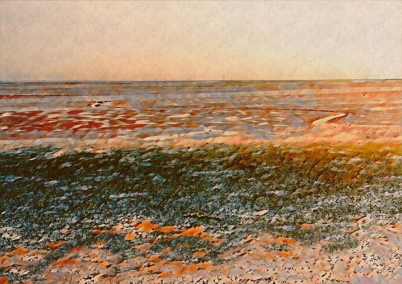 Das Watt ist bei Ebbe farbenfroh und variiert von orange über blau und grün bis hin zu beige.