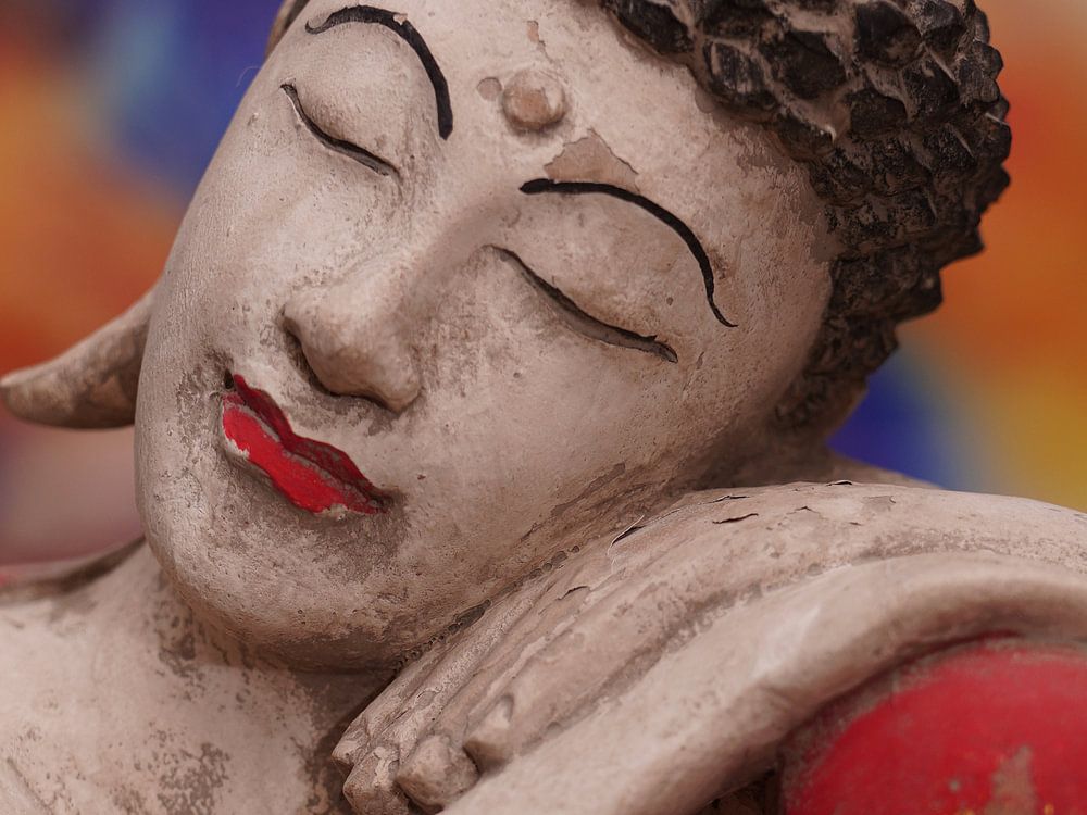 Farbenfroher, entspannender Buddha in schöner Umgebung zur Inspiration und Reflexion