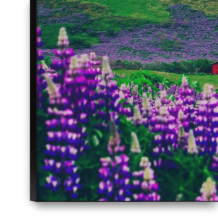 Bestelle dieses Blumen-Wandbild Island Lupinenfelder von MireilleGPhotography als Reproduktion auf Leinwand, Alu-Dibond, als Poster, Fototapete oder Acrylglasbild.