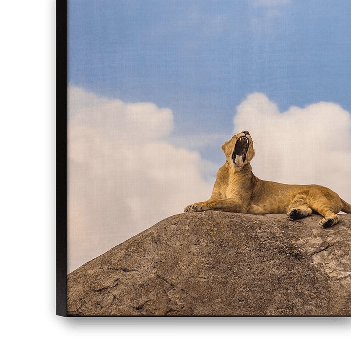 Dieses Kunstwerk ist perfekt für alle, die ihre Innenräume mit einem kraftvollen, natürlichen Look bereichern wollen. Ob für ein Büro, ein Wohnzimmer, ein Studio oder einen Gastraum, dieses Bild strahlt Autorität, Gelassenheit und zeitlose Schönheit aus. Holen Sie sich ein Stück pure Wildnis in Ihr Zuhause und lassen Sie sich von der ruhigen Kraft dieser Königin der Savanne inspirieren.