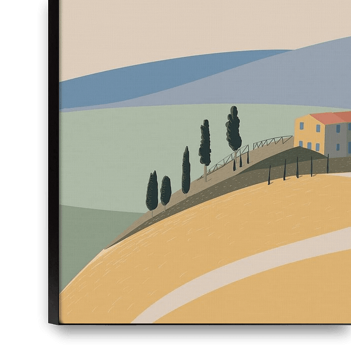 Ihre gewählte Kunst auf Leinwand, gespannt in einem Aluminiumrahmen. Schnell und einfach austauschbar für eine frische Ausstrahlung und ganz nach Ihren Wünschen.