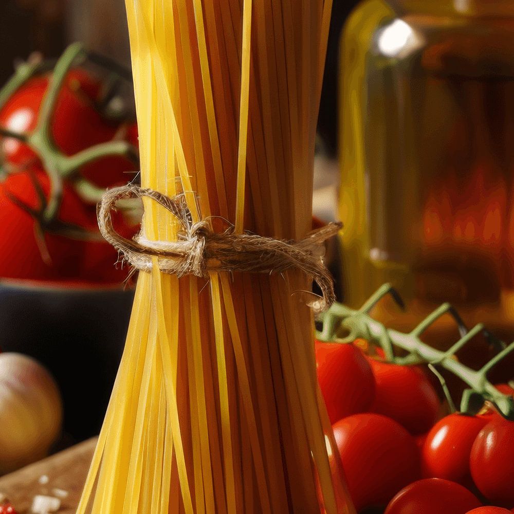 Dieses lebendige Kunstwerk fängt die Essenz der italienischen Küche ein, mit einem Bündel Spaghetti umgeben von frischen Tomaten, Basilikum, Knoblauch und Olivenöl. Die warme und einladende Atmosphäre dieses Bildes macht es zu einem idealen Dekorationsstück für Küchen und Esszimmer, perfekt für Liebhaber der mediterranen Küche. Bringen Sie einen Hauch von Italien in Ihr Zuhause und inspirieren Sie Ihre kulinarischen Kreationen.