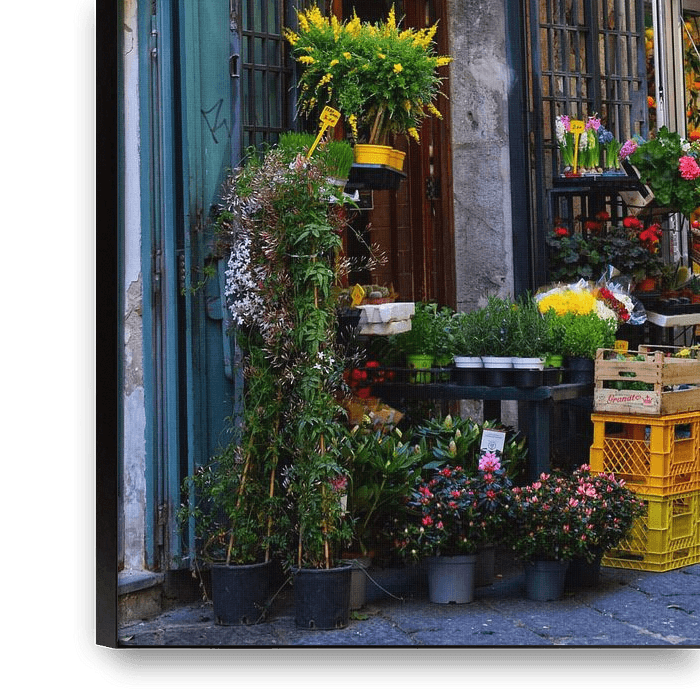 Bestelle dieses Blumen-Wandbild Italienisches Blumengeschäft von Maaike Hartgers als Reproduktion auf Leinwand, Alu-Dibond, als Poster, Fototapete oder Acrylglasbild.