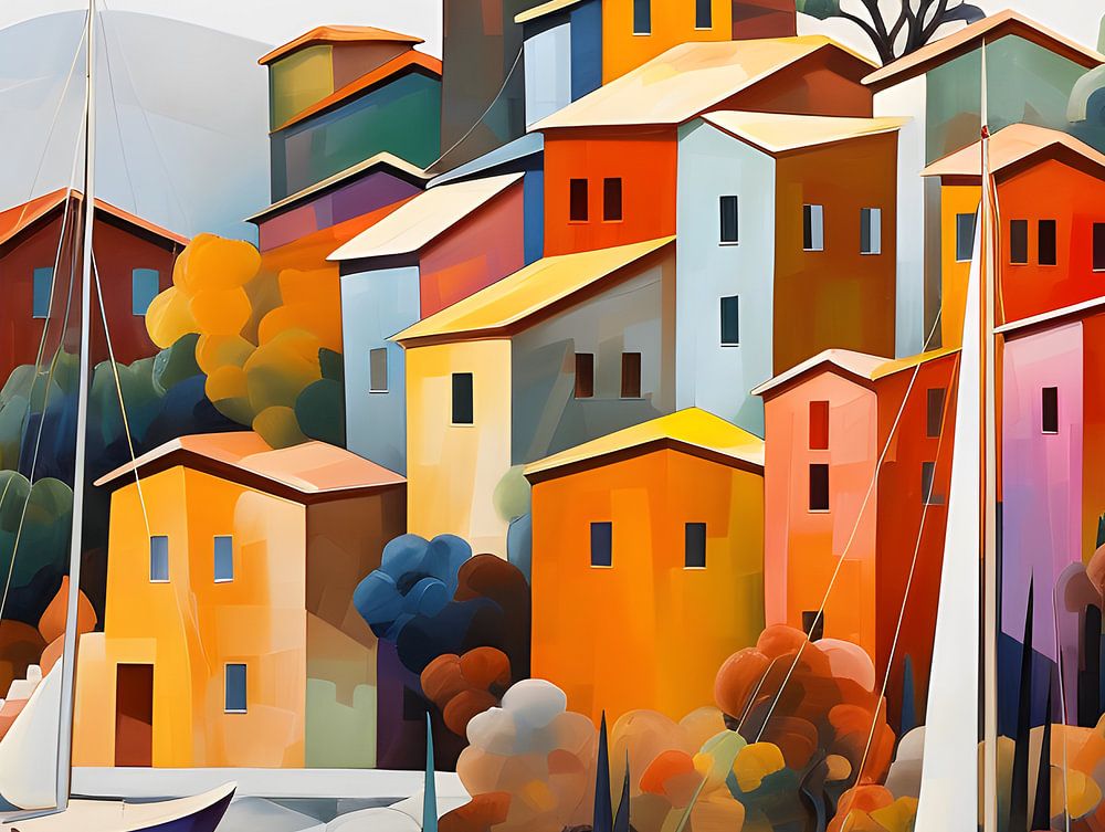 Italienisches Fischerdorf im Herbst, Griechenland