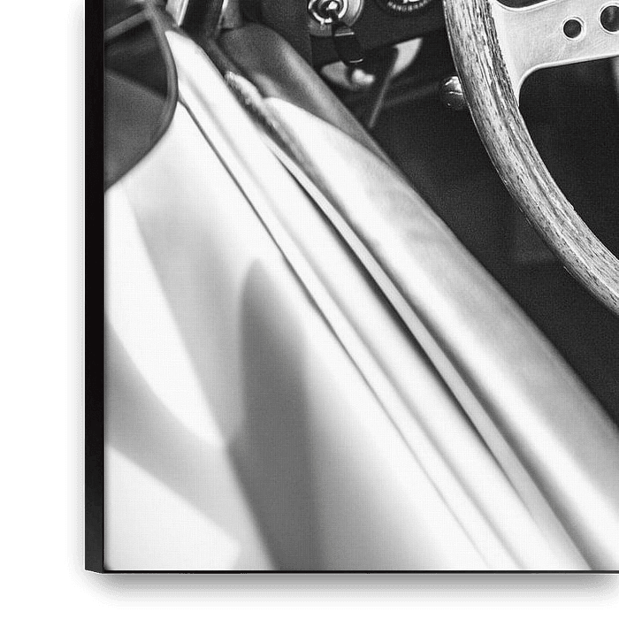 Über „Jagauar E-Type klassischer Sportwagen Armaturenbrett in schwarz und weiß“ von Sjoerd van der Wal Fotografie