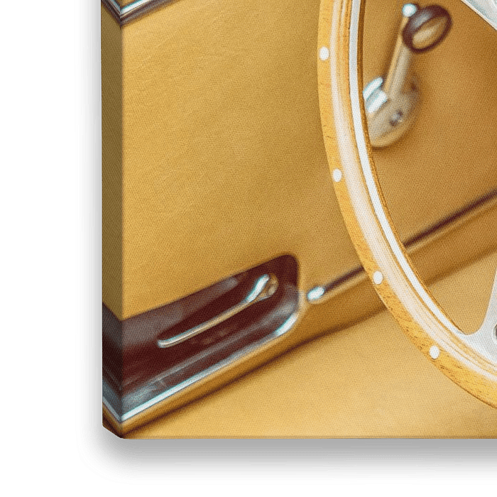 Bestelle das Foto Jaguar E-Type Roadster Oldtimer-Sportwagen-Interieur von Sjoerd van der Wal Fotografie als Reproduktion auf Leinwand, Alu-Dibond, als Poster, Fototapete oder Acrylglasbild.