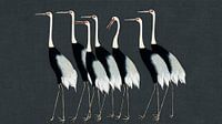Japanische Kraniche in einer beruhigen Darstellung als Malerei auf angenehmen einfarbigem Hintergrund mit tiefer Vintage Textur.