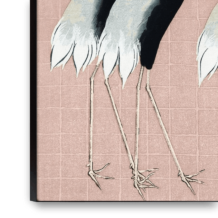 Japan Kraniche in einer beruhigen Darstellung als Malerei auf warmen Pastel Rosa Hintergrund.