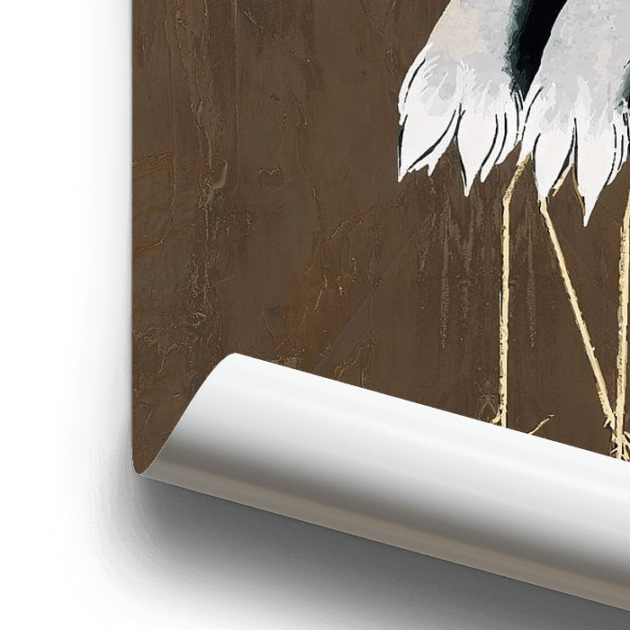 Japan Kraniche in einer beruhigen Darstellung als Malerei auf warmen beige braun Hintergrund.
