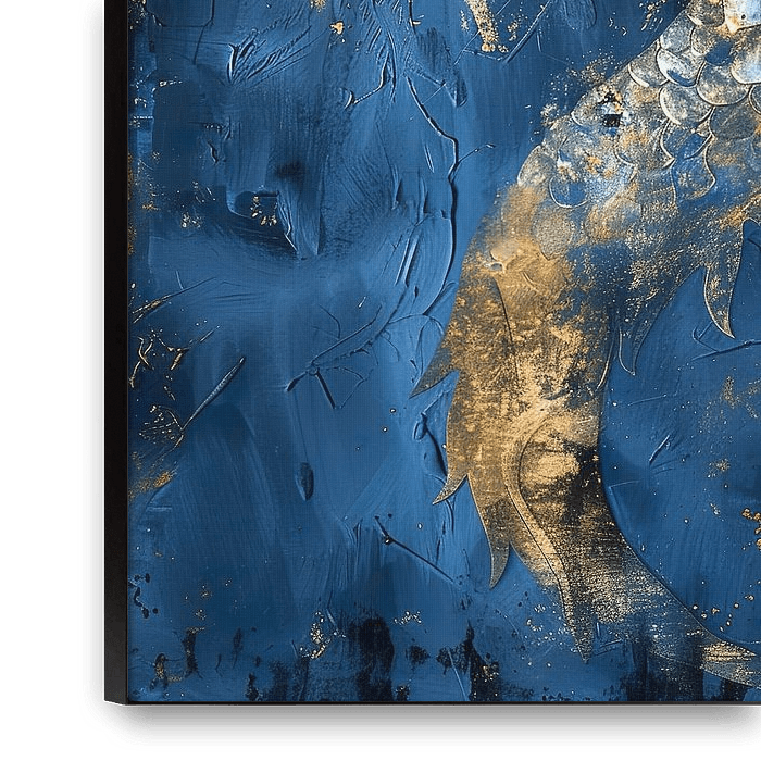 Bestelle dieses Japanische Kunst-Wandbild Japandi Dekorativ, Vintage-Drache in Königsblau und Gold von Lauri Creates als Reproduktion auf Leinwand, Alu-Dibond, als Poster, Fototapete oder Acrylglasbild.