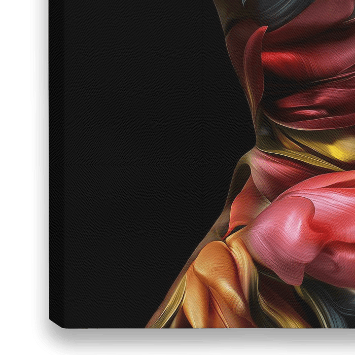 Fantasievolles Profilporträt einer Frau aus bunten Tulpen.