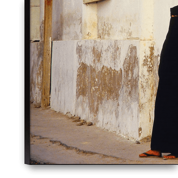 Eine verschleierte Frau vor einem Krankenhaus in Mukallah im Jemen. Die Aufnahme entstand mit analogem Film!