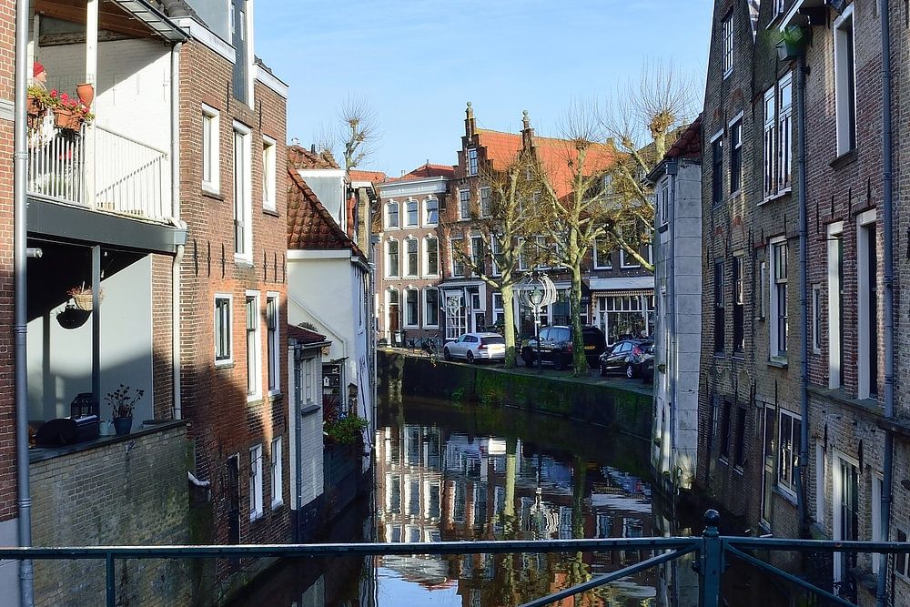 In der Stadt Oudewater, die zur Provinz Utrecht in den Niederlanden gehört, gibt es viele Grachten und damit auch viele Brücken. Jenseits der Brücke im alten historischen Zentrum, wo wir einen anständigen Platz für einen Kaffee ohne Masken fanden.