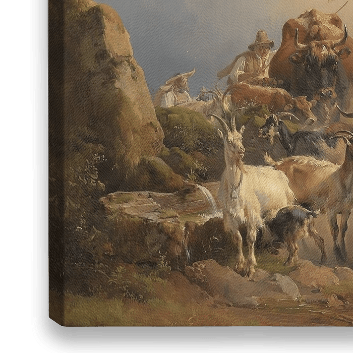 Bestelle dieses Landschafts-Wandbild Johann Nepomuk Rauch, Almabtrieb, 1845 von Atelier Liesjes als Reproduktion auf Leinwand, Alu-Dibond, als Poster, Fototapete oder Acrylglasbild.