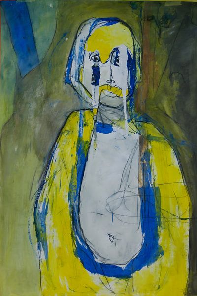 Er schaut dich an, aber das ist nicht sicher. Es kann auch sein, dass Johnnie an dir vorbei schaut. Oder steht er vor dem Spiegel und fragt sich, wie er wieder in Form kommen kann. Unabhängig von Absicht oder Planung ist dieser Johnnie entstanden. Durch eine intuitive Farbwahl und die Loslösung von festen Formen entsteht ein…