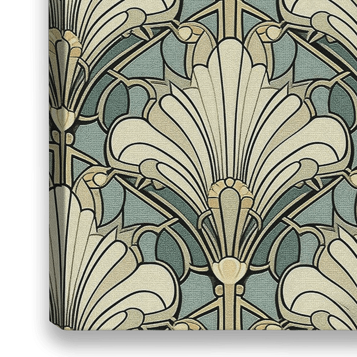Ein klassisches Motiv mit Pastellfarben. Dieses Stück ist von den Formen und der Farbpalette des Jugendstils der 1920er Jahre inspiriert. Das Werk verleiht Ihrer Einrichtung einen eleganten und klassischen Touch!
