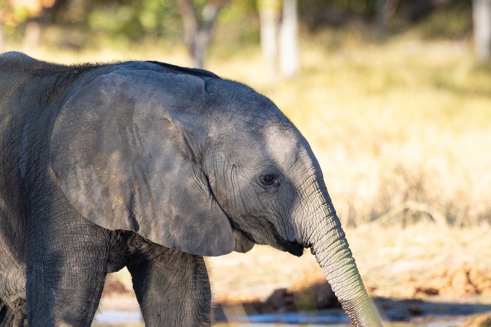 Junger Elefant im Khwai-Fluss des Okavango-Deltas in Botswana.