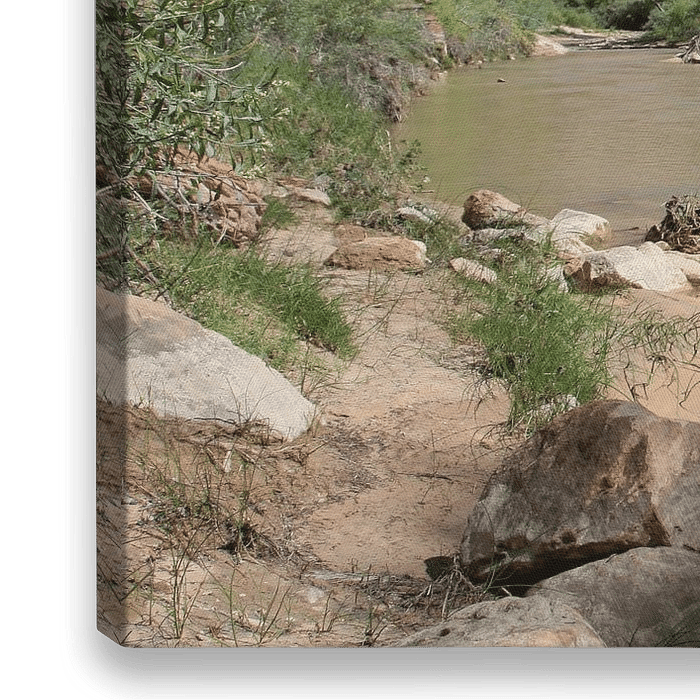 Der Virgin River im Zion National Park. Im Hintergrund die Spitze von Angels Landing und der Große Weiße Thron.