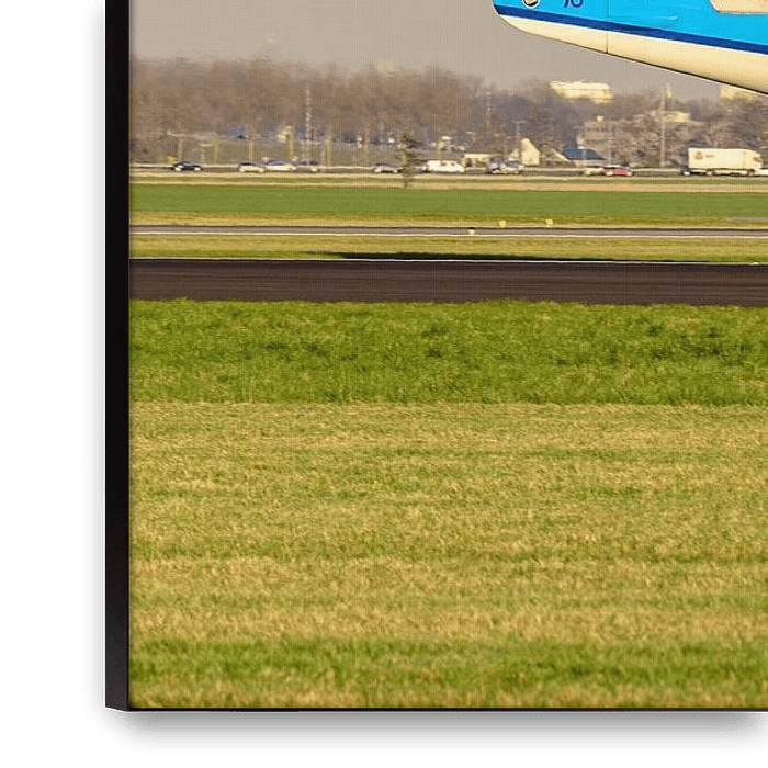 Bestelle das Foto KLM Fokker 70 Passagierflugzeug. von Jaap van den Berg als Kunstdruck auf Leinwand, Alu-Dibond, als Poster, Fototapete oder Acrylglasbild.