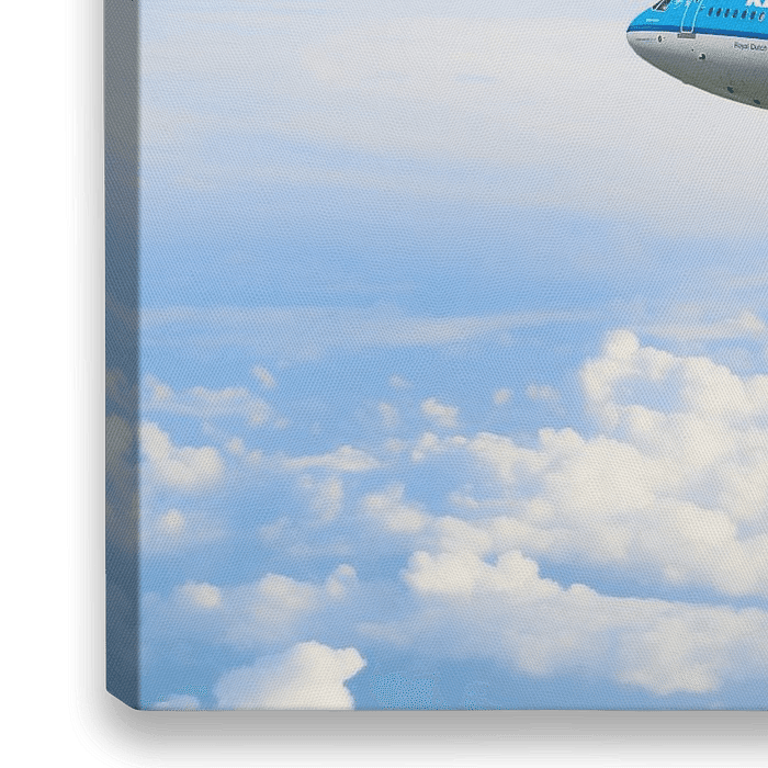 KLM (Koninklijke Luchtvaart Maatschappij) McDonnell Douglas MD-11 vliegtuig na de start van de luchthaven Schiphol boven de wolken in de blauwe lucht.
