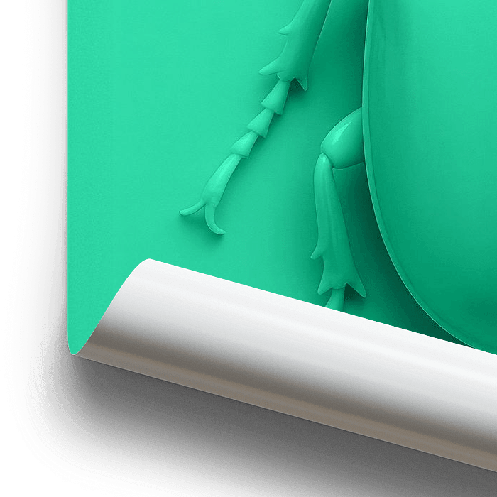 Bestelle dieses abstrakte Wandbild Käfer auf Türkis von Studio Slabamski als Reproduktion auf Leinwand, Alu-Dibond, als Poster, Fototapete oder Acrylglasbild.