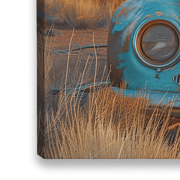 Ein verrosteter Volkswagen Käfer steht verlassen in der Wüste. Der einst glänzende Lack ist jetzt stumpf und abgeblättert, und Rostflecken ziehen sich wie Narben über die Karosserie. Um die Räder hat sich Sand angesammelt, und die Fenster sind mit einer Staubschicht bedeckt. Die Sonne wirft einen hellen Schein auf die trostlose…