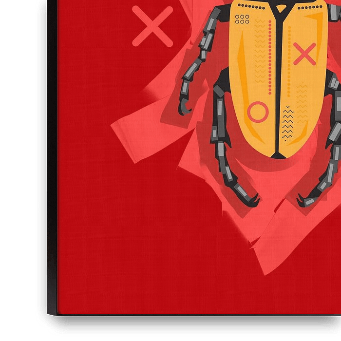 Bestelle dieses abstrakte Wandbild Käfer in rotem Hintergrund von Vectorheroes als Reproduktion auf Leinwand, Alu-Dibond, als Poster, Fototapete oder Acrylglasbild.