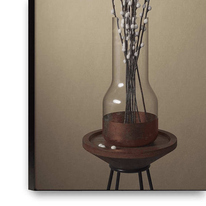Ihre gewählte Kunst auf Leinwand, gespannt in einem Aluminiumrahmen. Schnell und einfach austauschbar für eine frische Ausstrahlung und ganz nach Ihren Wünschen.