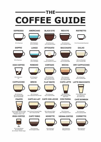 Bestelle das digitale Kunst Bild Kaffee Rezept Minimalist von Ratna Mutia Dewi als Reproduktion auf Leinwand, Alu-Dibond, als Poster, Fototapete oder Acrylglasbild.