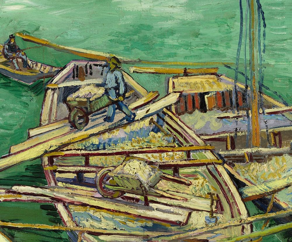 Kai mit Männern beim Entladen von Sandkähnen, Vincent van Gogh (1888)