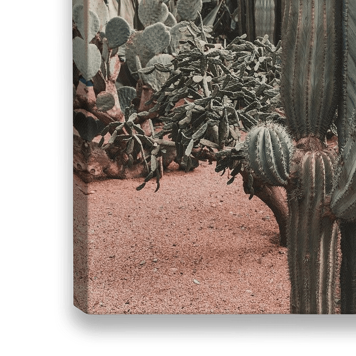 Große Kaktuspflanzen im Botanischen Garten in Marrakesch, Marokko: Jardin Majorelle. Wunderschöner Park mit allerlei verschiedenen Pflanzen und Kakteen.