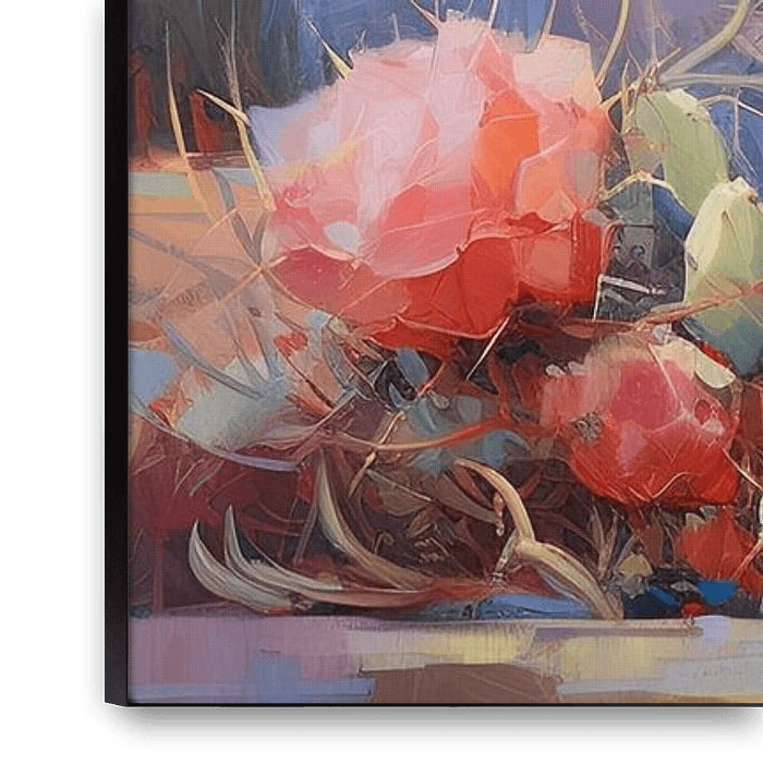 Ihre gewählte Kunst auf Leinwand, gespannt in einem Aluminiumrahmen. Schnell und einfach austauschbar für eine frische Ausstrahlung und ganz nach Ihren Wünschen.