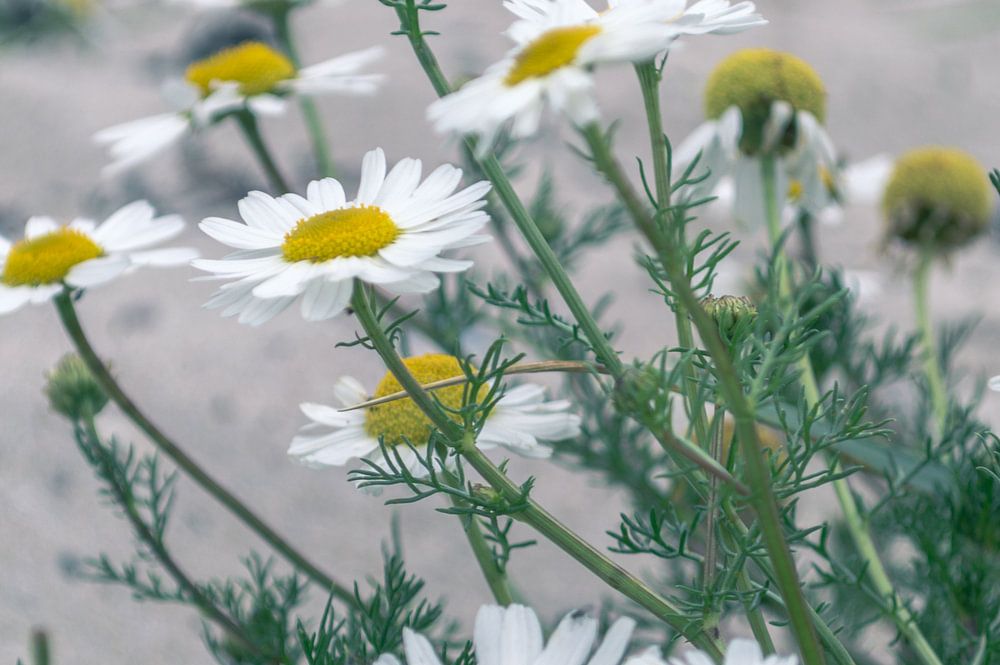 Ein schönes Foto von Kamillenblüten in der dänischen Landschaft blühen.