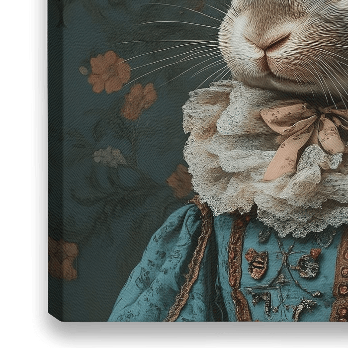 Bestelle diese Malerei Kaninchen-Porträt von But First Framing als Reproduktion auf Leinwand, Alu-Dibond, als Poster, Fototapete oder Acrylglasbild.