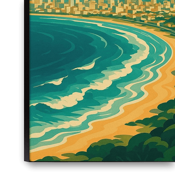 Dieses Art-Déco-Poster von Kapstadt fängt die atemberaubende Schönheit von Südafrikas Küstenjuwel ein, wo sich der Tafelberg über das glitzernde Wasser des Atlantiks erhebt. Goldene Strahlen beleuchten die Skyline der Stadt, die geschwungenen Strände und die üppig grünen Hänge in einem perfekten Gleichgewicht von Geometrie und Natur.…
