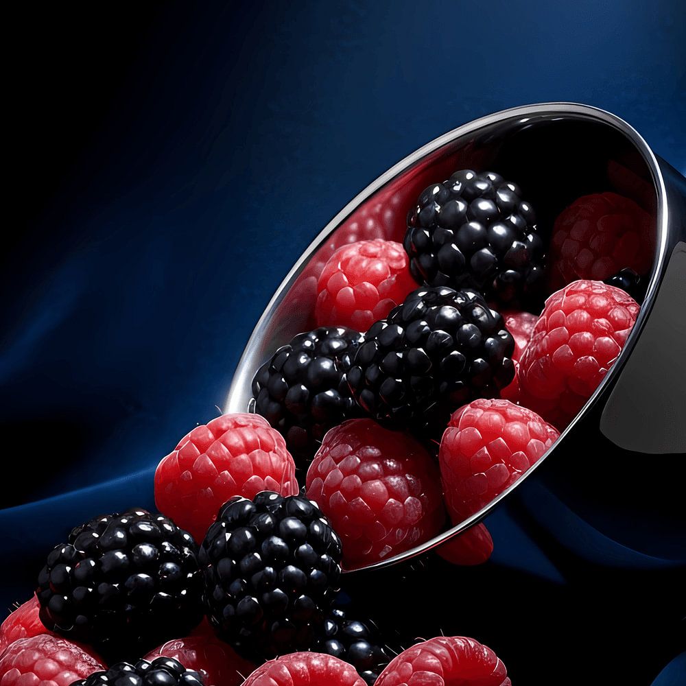 Diese fesselnde Komposition ist ideal für Räume, die sich nach dramatischer Eleganz sehnen, wie z. B. ein formelles Esszimmer oder eine anspruchsvolle Bibliothek. Der tief indigoblaue Hintergrund, der an einen Mitternachtshimmel erinnert, bietet einen luxuriösen, einhüllenden Rahmen für die Hauptdarsteller: die Beeren. Der Kontrast ist…