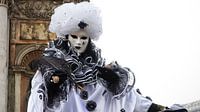 Ein schönes Outfit während des Karnevals in Venedig, Italien.