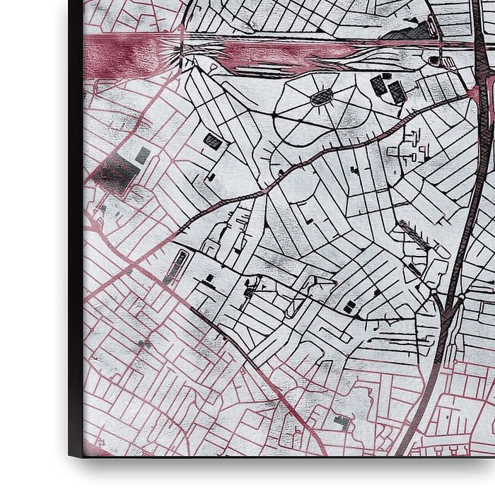 Diese Karte von Aulnay-sous-Bois trägt unseren maßgeschneiderten Stil „White Winter“. Die dunkelroten Straßen ziehen sich wie eine warme Arterie durch die kalte Winterlandschaft. Ein dicker weißer Schnee bedeckt die Felder und die Stadt, während die Vegetation ihre Blätter verloren hat und sich im Dunkeln auf den Frühling vorbereitet.…