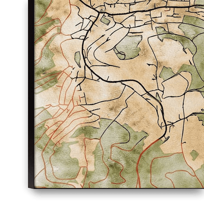 Diese Karte von Gummersbach hat unseren maßgeschneiderten Stil "Serene Summer". Die Landschaft hat einen warmen, sonnenverwöhnten Erdton, während sich die roten Straßen durch die blühende Vegetation schlängeln. Diese sommerliche Farbpalette ist inspiriert von der Art Jugendstil-Bewegung zu Beginn des letzten Jahrhunderts.…