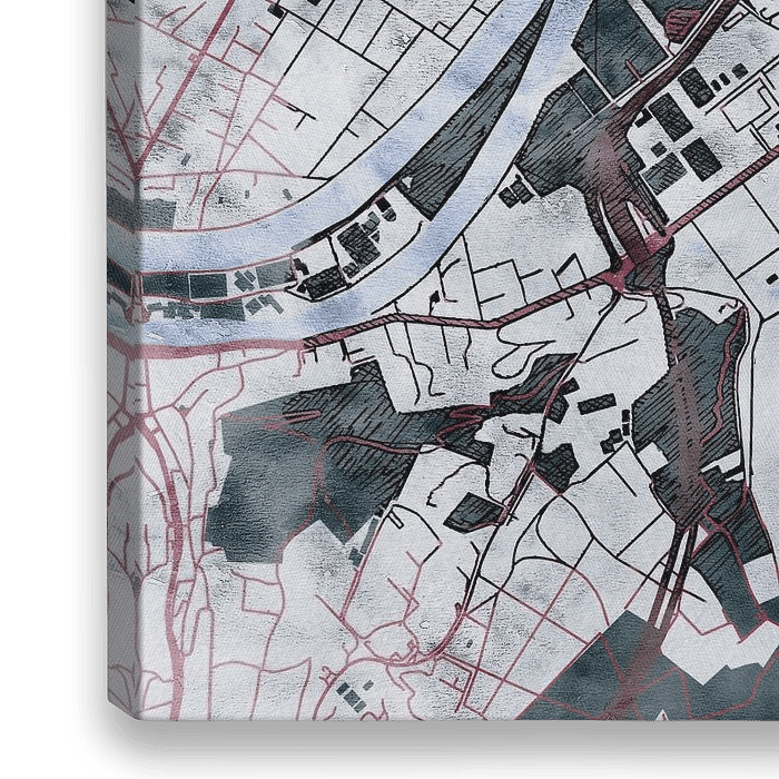 Diese Karte von Rueil-Malmaison trägt unseren maßgeschneiderten Stil „White Winter“. Die dunkelroten Straßen ziehen sich wie eine warme Arterie durch die kalte Winterlandschaft. Ein dicker weißer Schnee bedeckt die Felder und die Stadt, während die Vegetation ihre Blätter verloren hat und sich im Dunkeln auf den Frühling vorbereitet.…