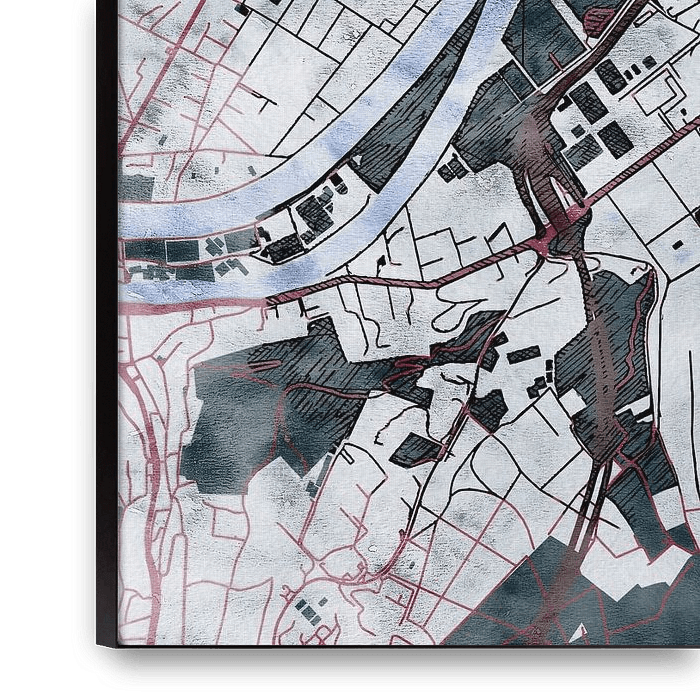 Diese Karte von Rueil-Malmaison trägt unseren maßgeschneiderten Stil „White Winter“. Die dunkelroten Straßen ziehen sich wie eine warme Arterie durch die kalte Winterlandschaft. Ein dicker weißer Schnee bedeckt die Felder und die Stadt, während die Vegetation ihre Blätter verloren hat und sich im Dunkeln auf den Frühling vorbereitet.…