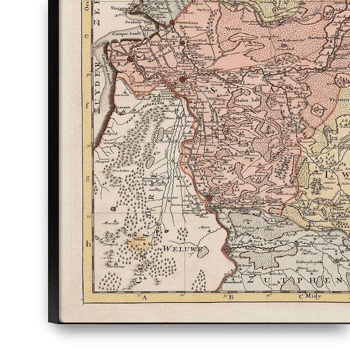 Bestelle Karte von Salland, Twente und Drente als Reproduktion auf Leinwand, Alu-Dibond, als Poster, Fototapete oder Acrylglasbild.