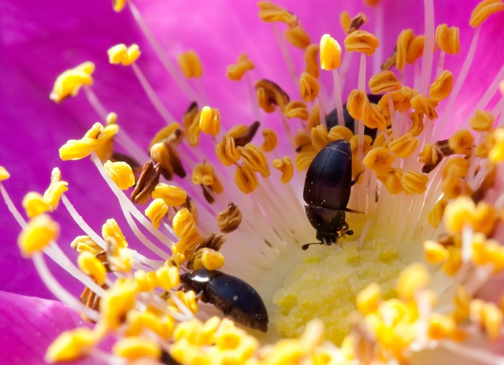 Blüte einer Kartoffelrose in der Nahaufnahme