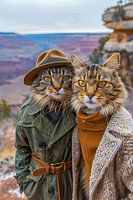 Das eindrucksvolle Kunstwerk "Canyon-Pfoten" zeigt zwei faszinierende Katzen, die die majestätische Weite des Grand Canyon umarmen. In ihren stilvollen Entdecker-Outfits – der eine mit einem klassischen Hut, der andere in einem gemütlichen Strickpulli – reflektieren sie den Geist der Abenteuerlust und der Entdeckung, die dieser…