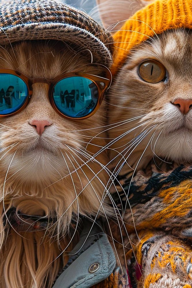Das lebendige Bild "Stadtbummler Schnurrer" präsentiert zwei modebewusste Katzen, die mit der faszinierenden Skyline von Dubai im Hintergrund posieren. Mit ihren stilvollen Hüten und farbenfrohen Schals spiegeln sie die kosmopolitische Atmosphäre der Metropole wider. Diese tierischen Trendsetter stehen symbolisch für das Zusammenspiel von Tradition und Moderne, das Dubai charakterisiert. Ihre reflektierenden Sonnenbrillen fangen das Flimmern der Stadt ein und machen das Werk zu einem dekorativen Statement für Liebhaber von Urbanität und tierischer Eleganz.